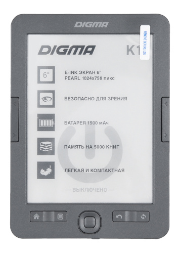 Электронная книга Digma K1 6" E-ink HD Pearl 758x1024 600MHz 128Mb/4Gb/SD/microSDHC темно-серый