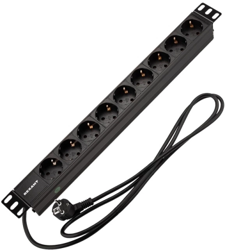 Блок распределения питания Rexant 04-0105-1 гор.размещ. 9xSchuko базовые 16A Schuko 2м