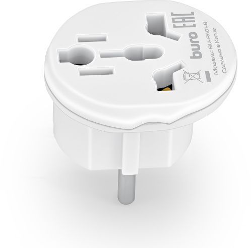 Адаптер-переходник Buro BU-PA01-W (1 розетка) белый (пакет ПЭ)