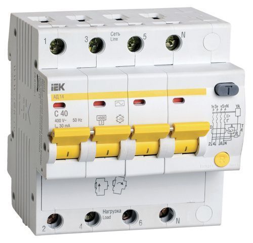 Выключатель автом. дифф. тока IEK MAD10-4-040-C-030 АД14 40A тип C 4.5kA 30мА AC 4П 400В 5мод белый (упак.:1шт)