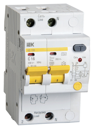 Выключатель автом. дифф. тока IEK MAD12-2-016-C-030 АД12М 16A тип C 4.5kA 30мА A 2П 230В 3мод белый (упак.:1шт)